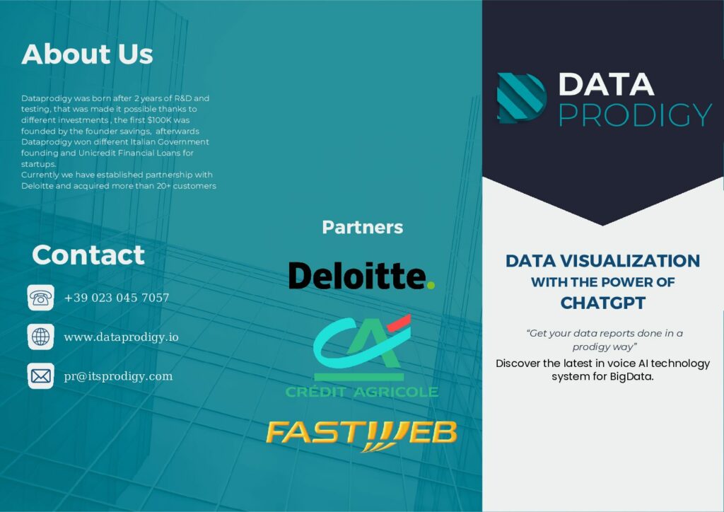 DataProdigy is a platform designed for managers, which helps them rapidly generate business intelligence reports without using BI or Excel files. Thanks to a Big Data engine and Artificial Intelligence, DataProdigy can use human language: it turns each question into a reporting call and instantly creates a new business report. DataProdigy drastically reduces time and costs by supporting management throughout the approval process for each report. It is a customizable product that can connect to all enterprise platforms (SalesForce, Sap, GoogleCloud, Oracle, AWS, etc.) and quickly generate intuitive reports. As a multilingual system, it can be used in different countries.