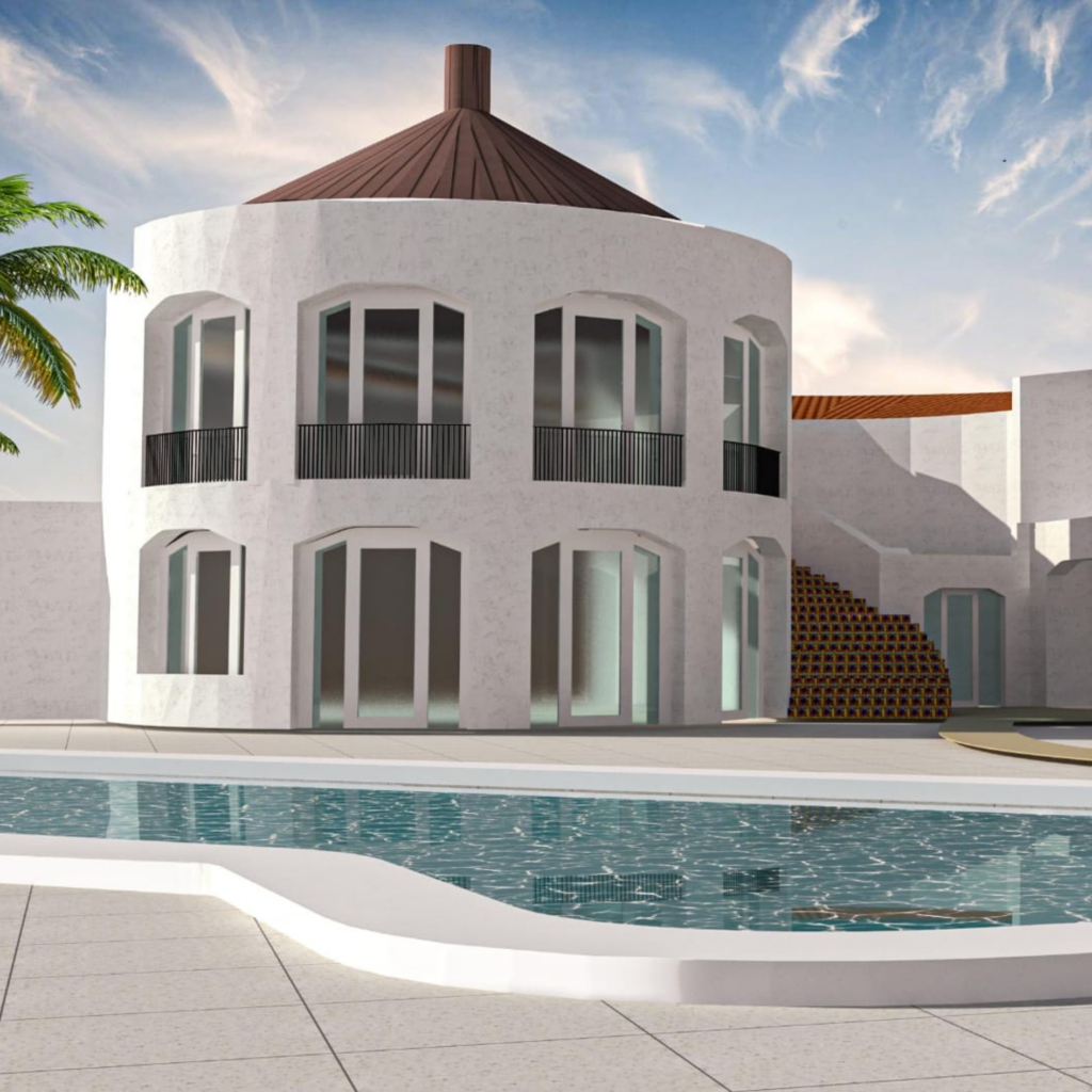 Reproductions of the interior and exterior spaces of the Hotel Calette located in Cefalu, Sicily